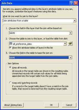 The resulting attribute table includes all the preference data: