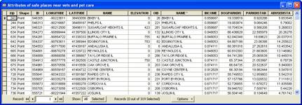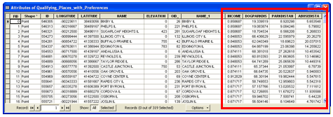 Here is the attribute table for the “Qualifying Places with Preferences” layer, with the preference data highlighted:
