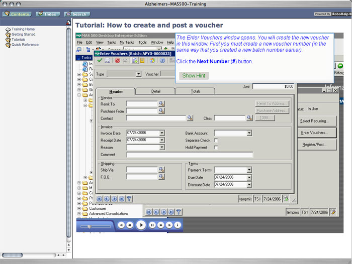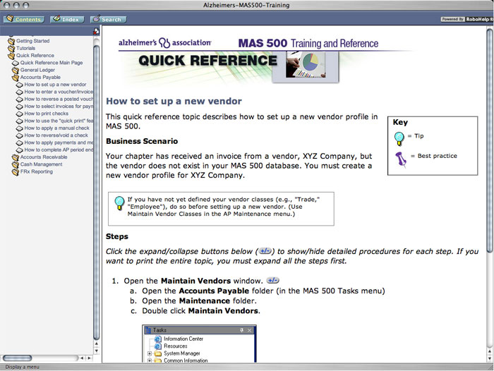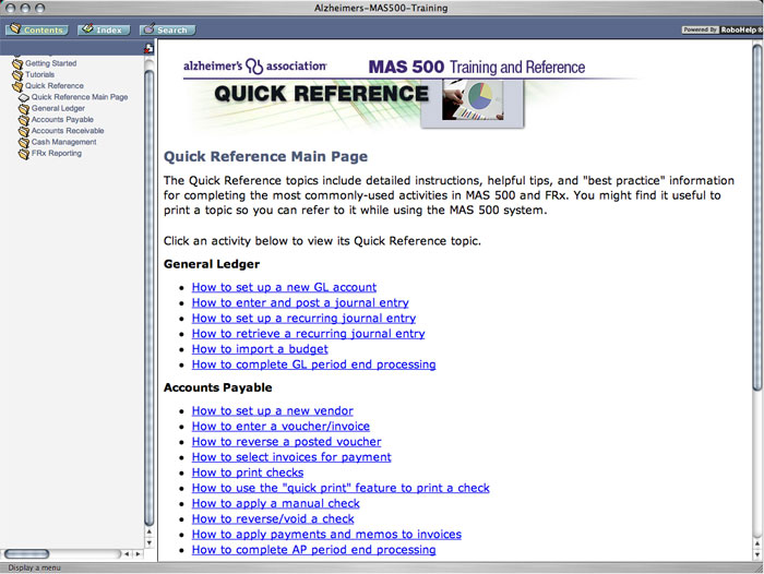 Project: Web-based training and reference guide for financial accounting software, including software simulation