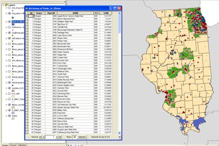 I then load the prepared “parks” layer, selecting only those parks that intersect the Illinois area.
