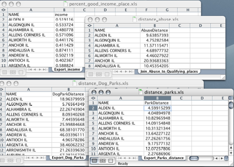 Here is a newly-created joined spatial layer for abuse locations and places, now with miles as the distance unit (rather than decimal degrees). I use the "Distance" field to operationalize my preference, “Far from abuse locations.”